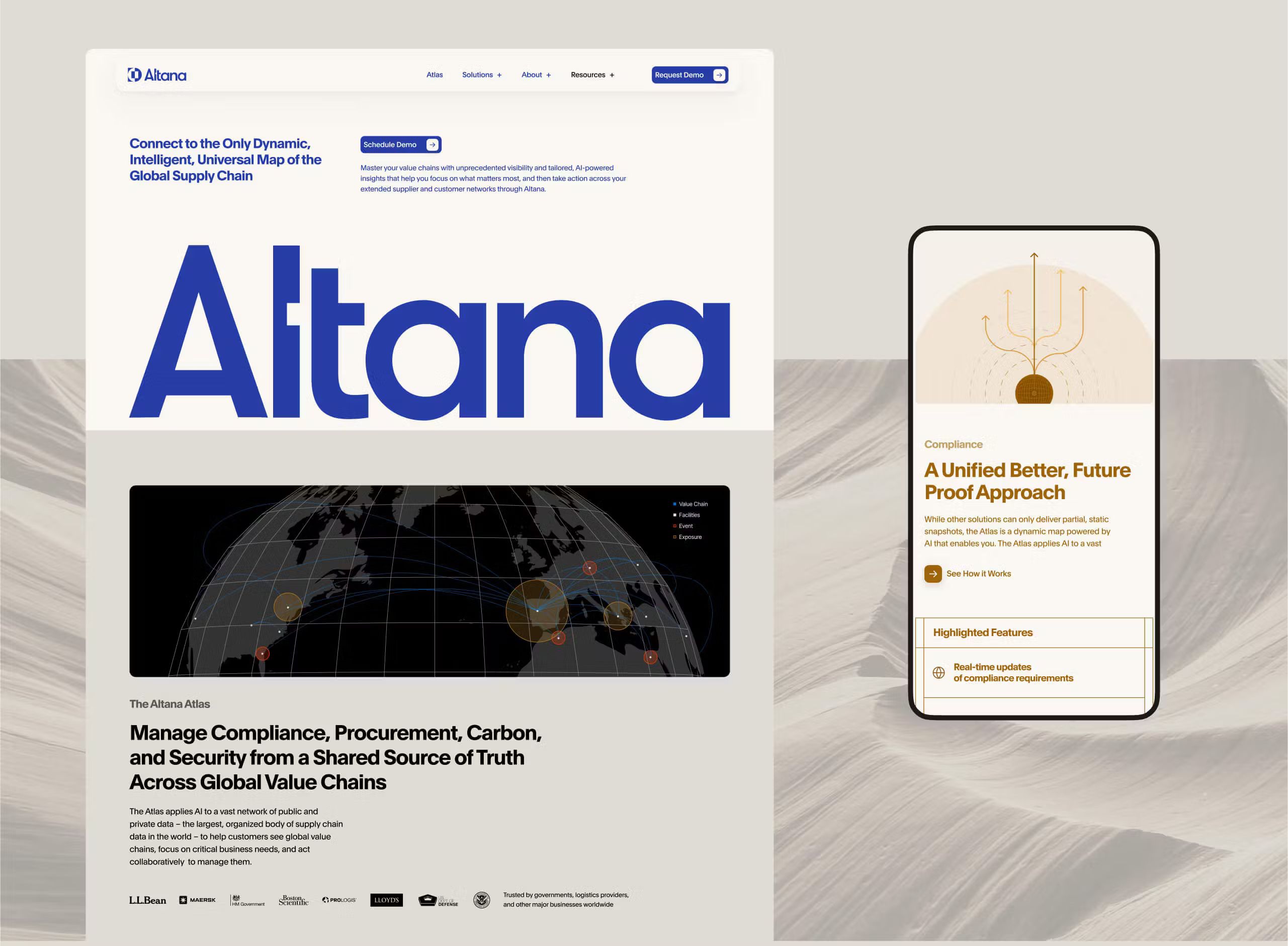 We teamed up with Altana to tell a story where AI plays the supporting act, letting their game-changing solutions to globalization challenges take the spotlight. From creating a bold visual language to crafting animated illustrations that turn complex concepts into bite-sized, eye-catching ideas, we brought their vision to life. The site isn’t just performing—it’s thriving—and as Altana learns and grows with their customers, we’re right there with them, fine-tuning and evolving their digital presence.