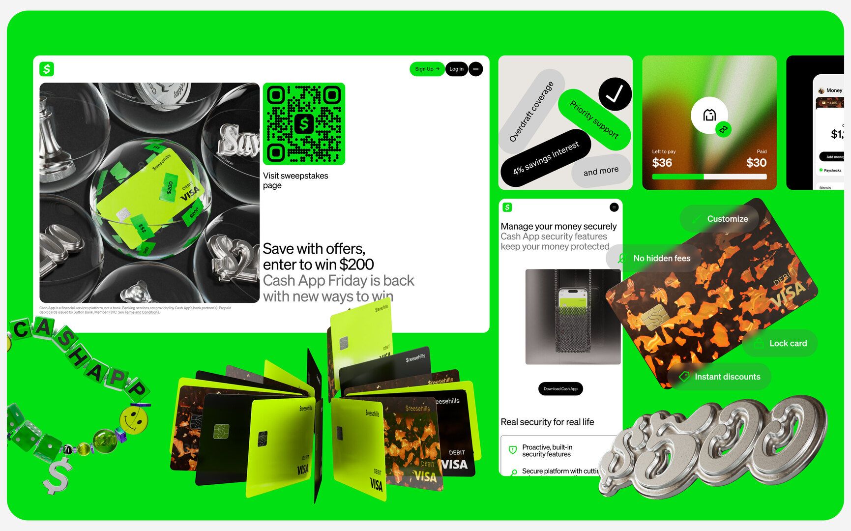 We defined the visual direction for their latest monthly giveaways—creating email, web, and social content supported by 2D, 3D, and motion assets. The work is unmistakably Cash App: bold, tactile, and built to command attention across every touchpoint.