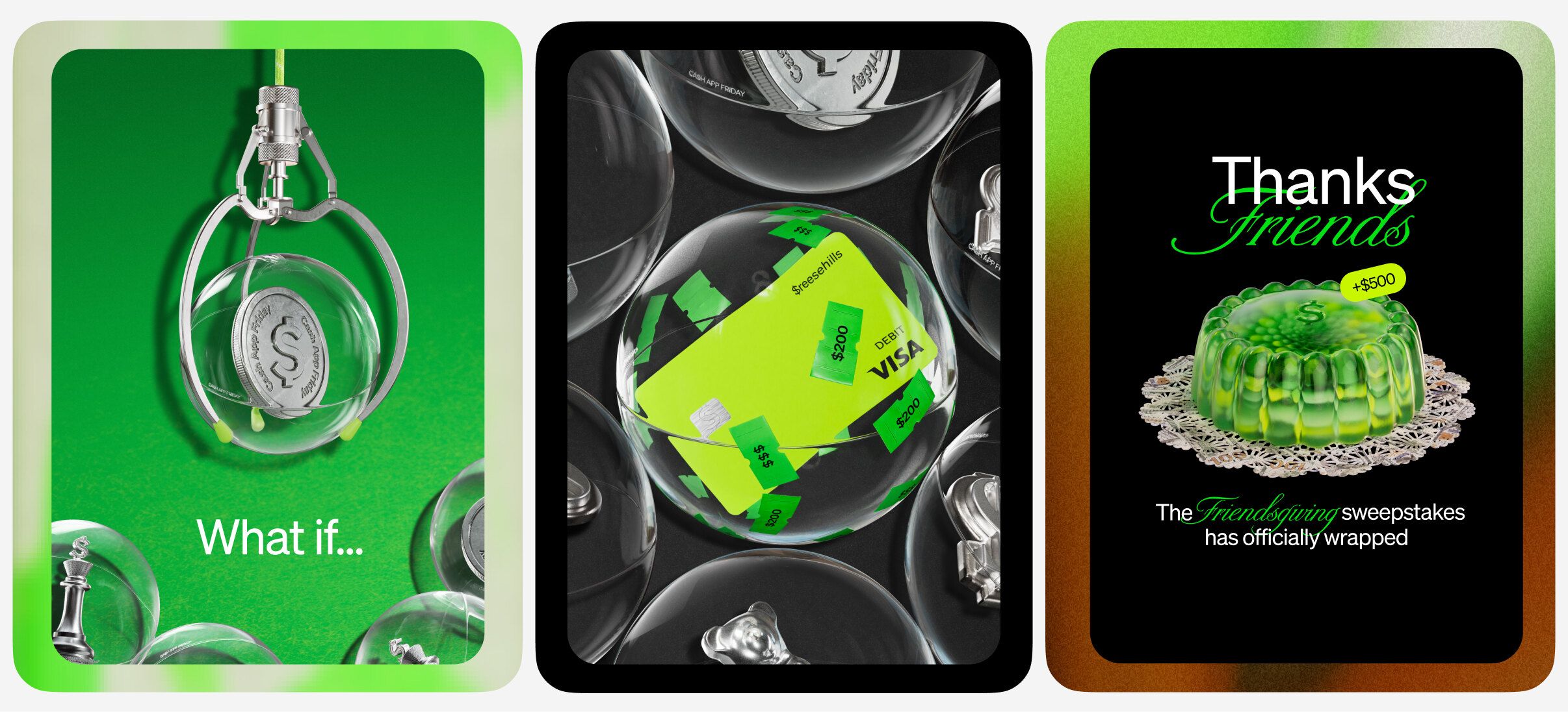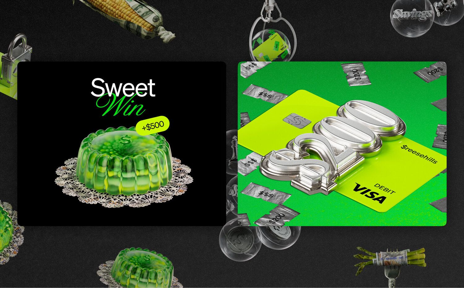 In our long-standing partnership with Cash App, we developed the key visual look for their most recent monthly giveaways—producing email, web, and social assets, including 2D, 3D, and motion content. The visuals are bold, tactile, and instantly recognizable, bringing Cash App’s brand to life with striking clarity and impact.