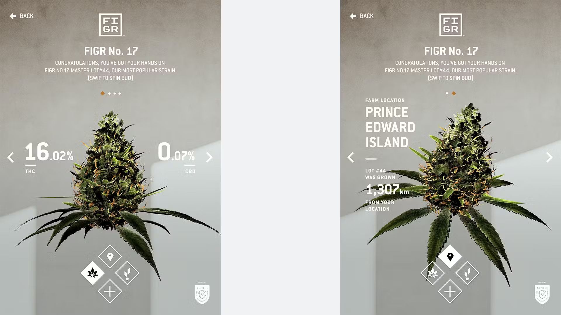 When customers, or "budtenders," open the app, they are presented with an age gate and a camera prompting them to scan the Figr logo. Once scanned, the app produces a detailed 3D render of their specific strain, and they can dive deeper into its botanical profile. Users can interact with the plant to see info such as the plant origins and the terpene profile, which informs taste and aroma of the strain.