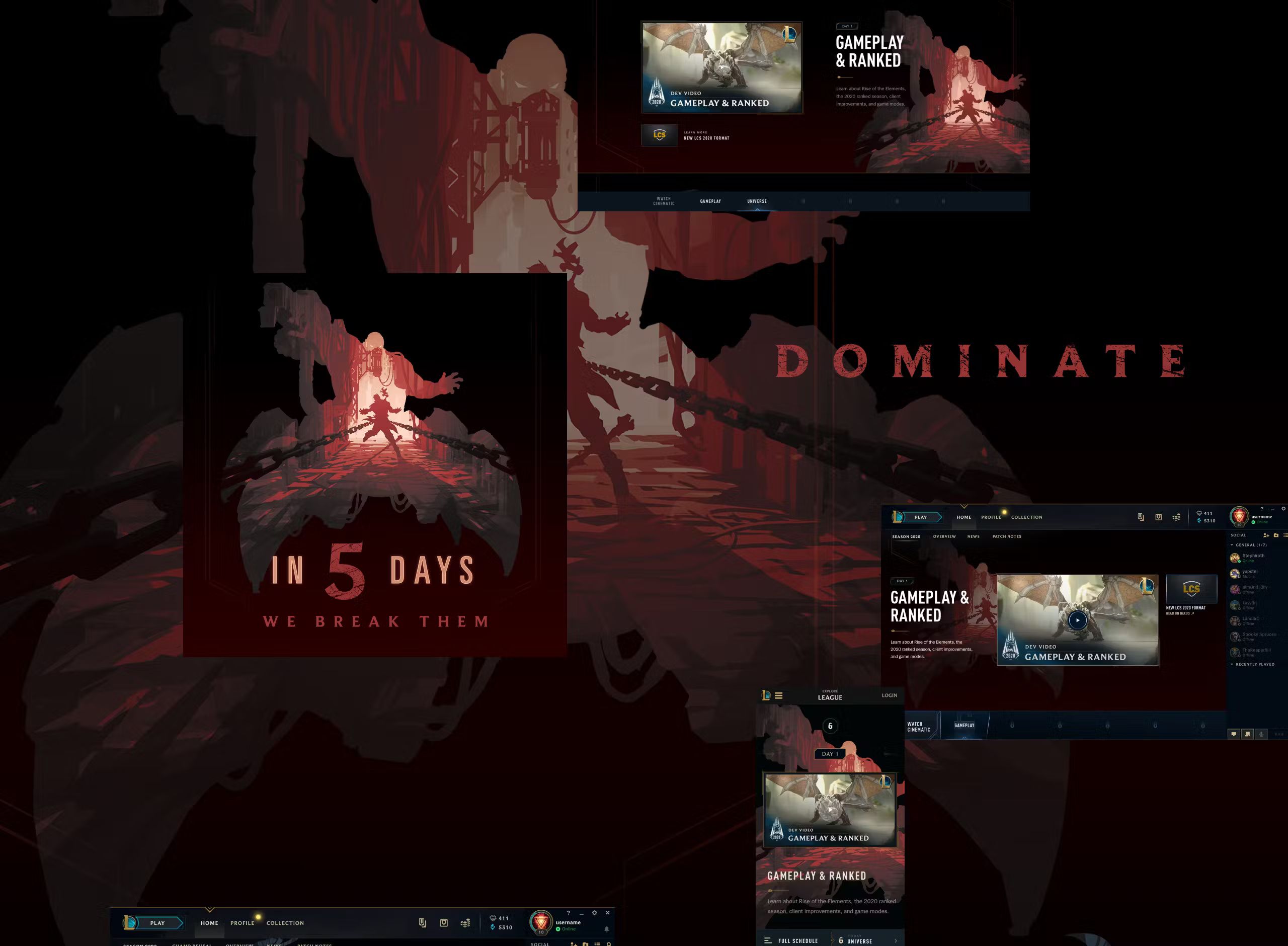 We worked hand-in-hand with the Riot team to create unique champion key art and develop the overall brand language and visual design system. The new design hyped players with a week-long launch campaign, allowing users to start the new year ---