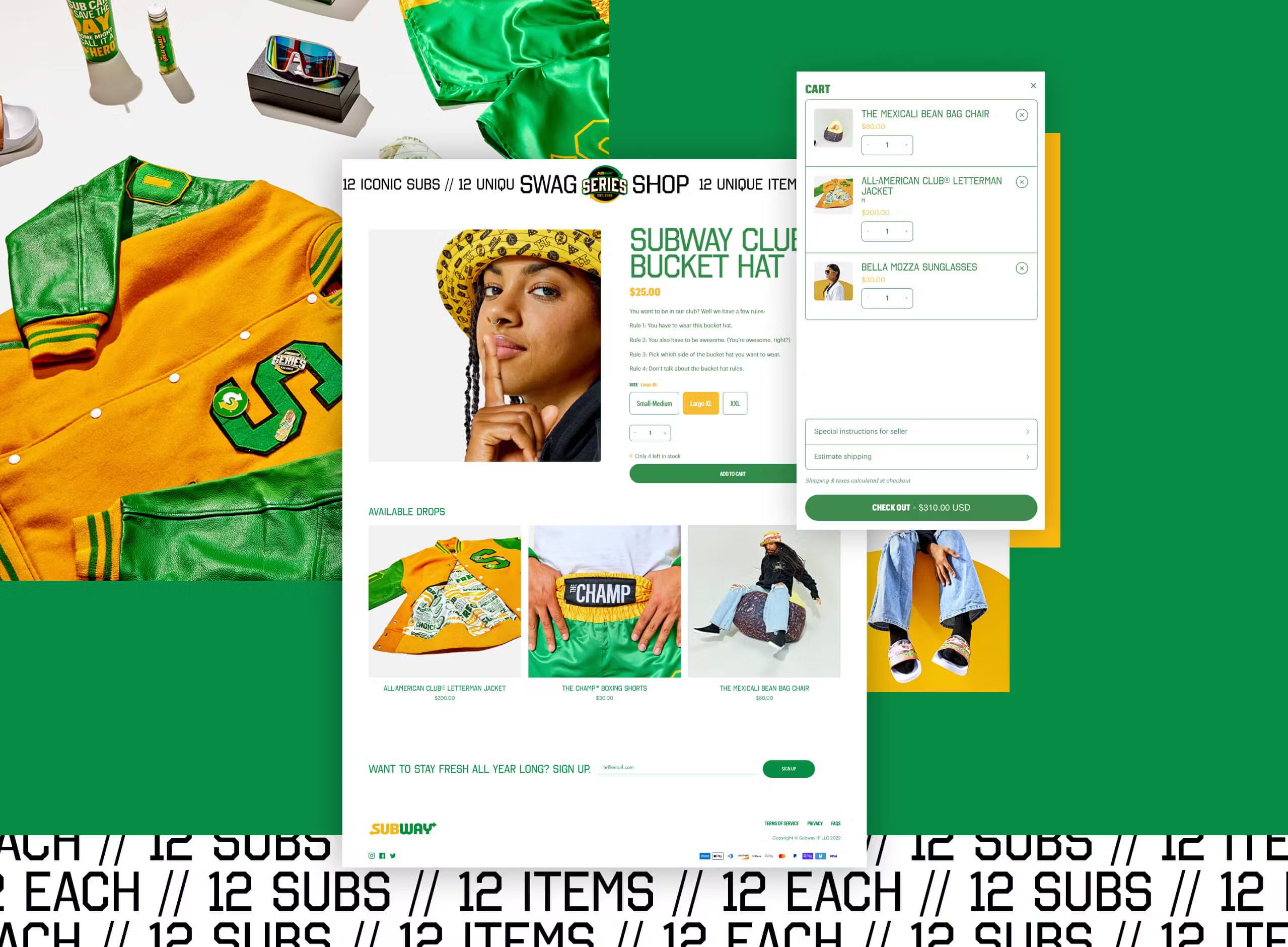 Subway’s been keeping it fresh since 1965. To celebrate their new menu, we created a unique hype drop and a swag shop to purchase limited edition Subway swag.