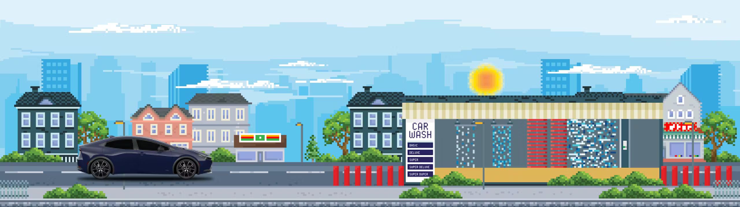 We started by designing a custom Game Boy inspired UI to house all the action that players could control with either their mouse, keyboard, or thumbs. Working with our creative and content teams we designed an entire 8-bit world for our game to take place in from scratch, including: a custom mascot to lead users through the game (Pinny!), three different driveable levels and a custom themed car wash for each. After loading it up with all the 16-bit music and sound effects we could, our interactive developers took over to bring it all together.