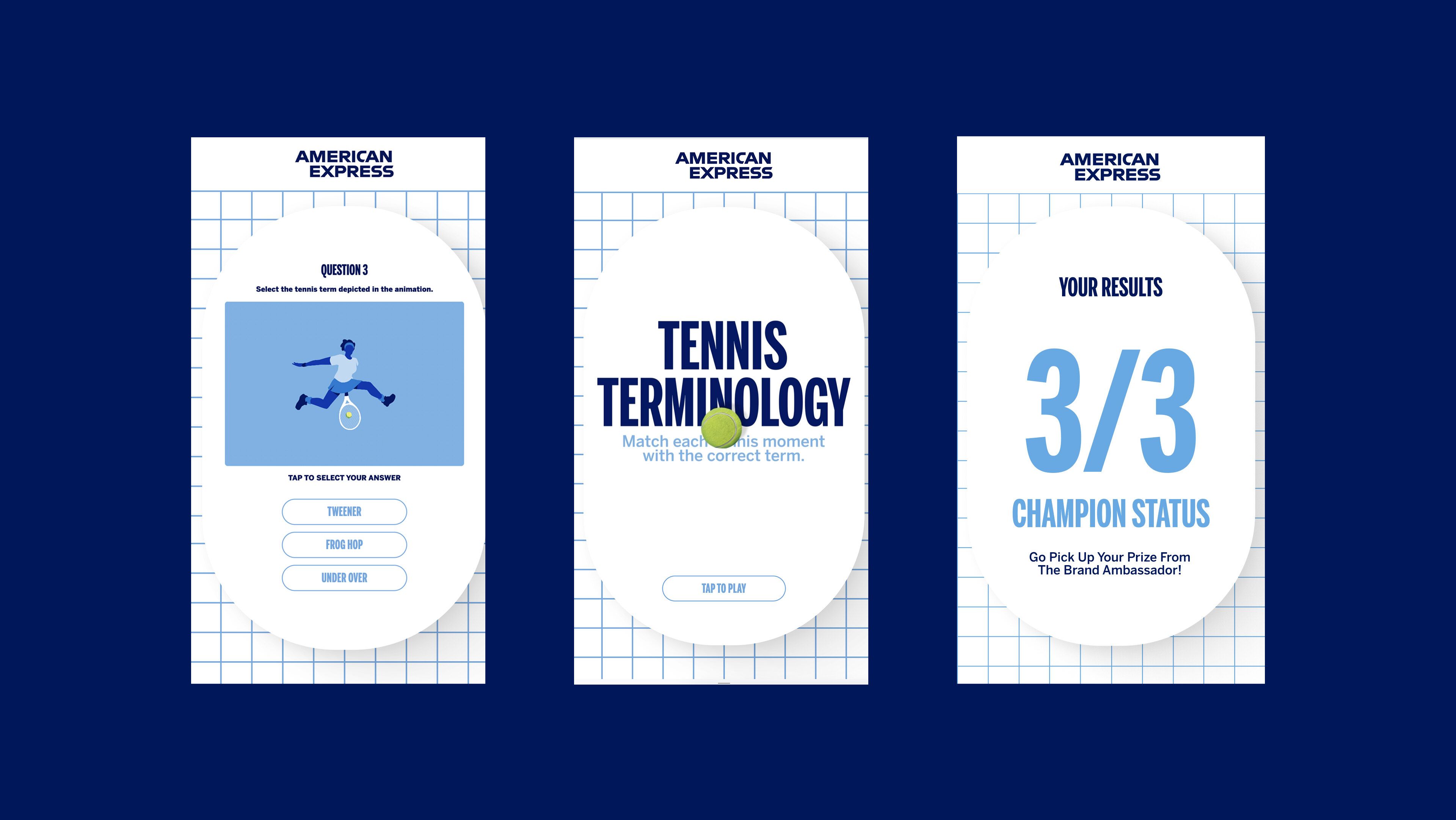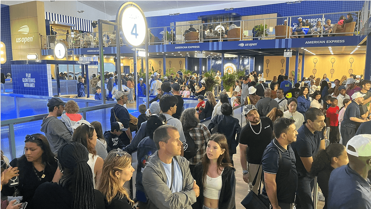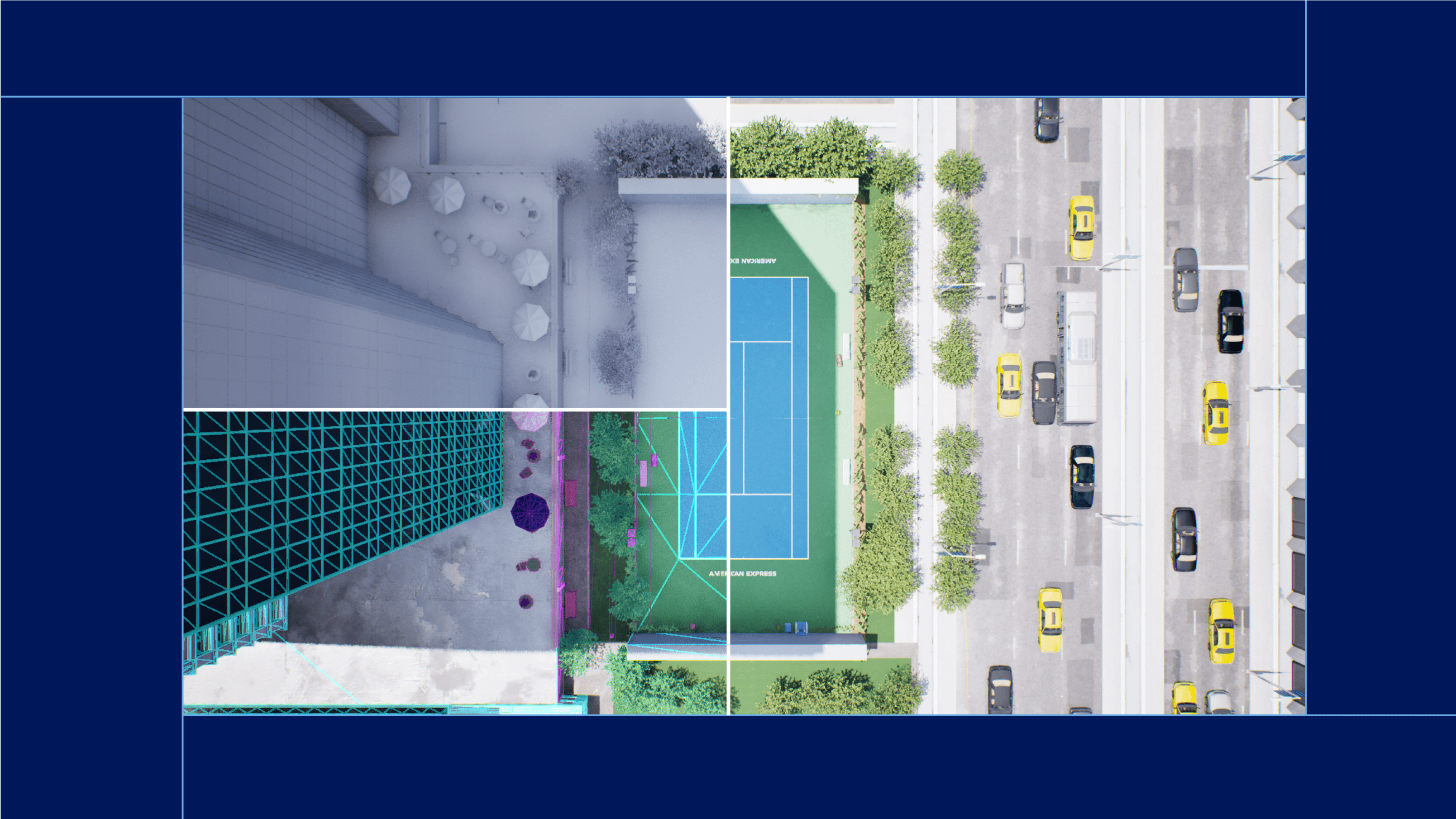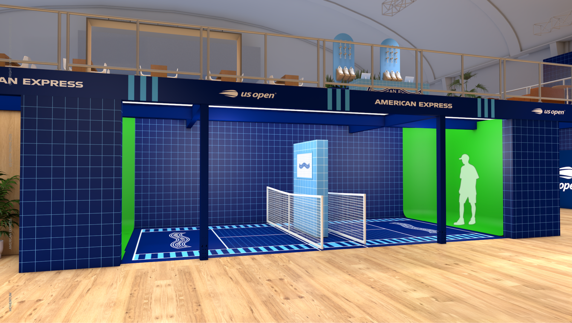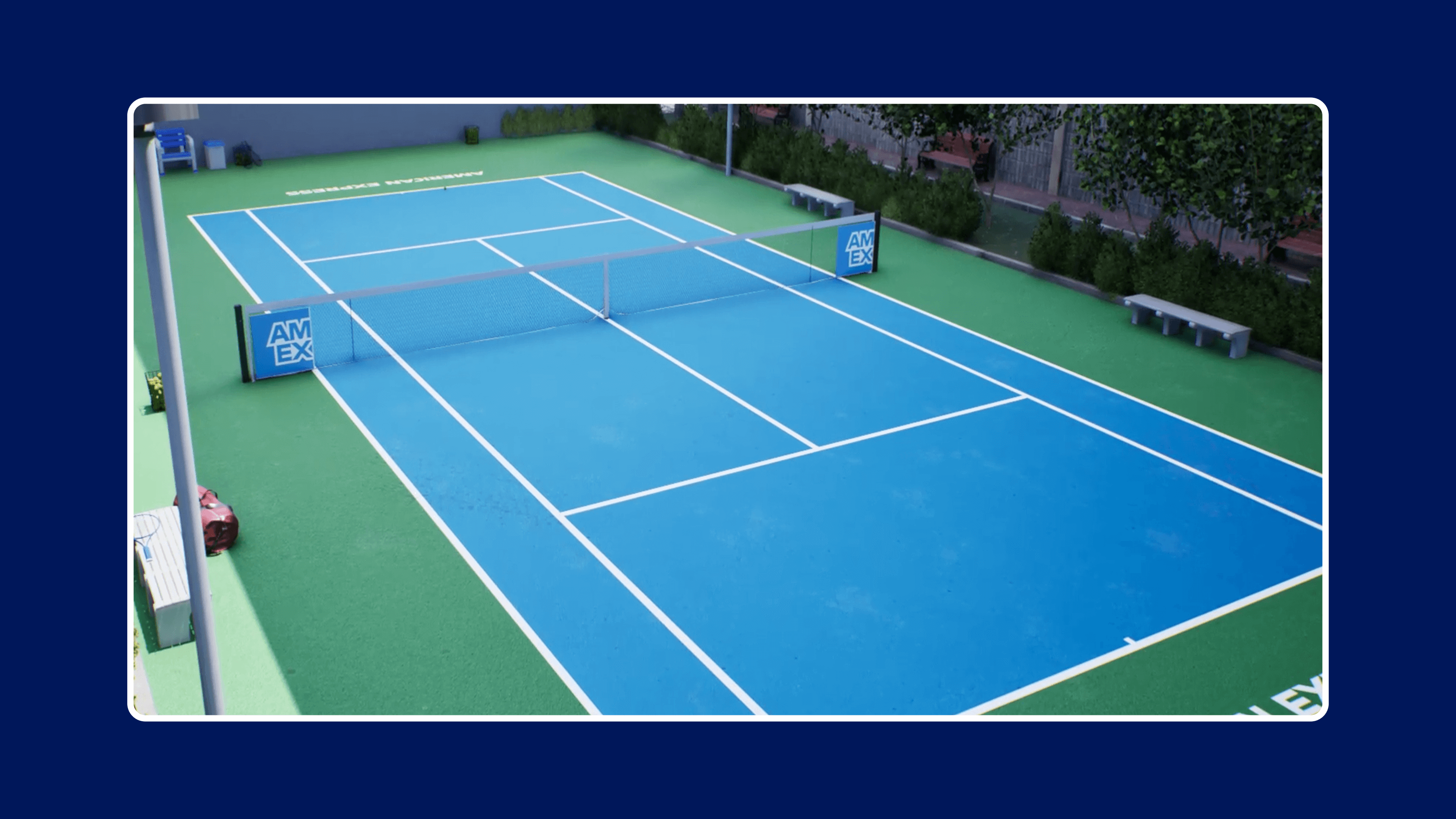 The virtual scene was built in Unreal Engine 5, featuring an American Express–branded court set against a vibrant New York City street backdrop. Designed as a seamless video loop made for social sharing, the match followed the ball from serve to finish as two players battled through a rally. A custom capture system queued players to ensure that no matter how a participant swung, the final output always looked polished and professional.