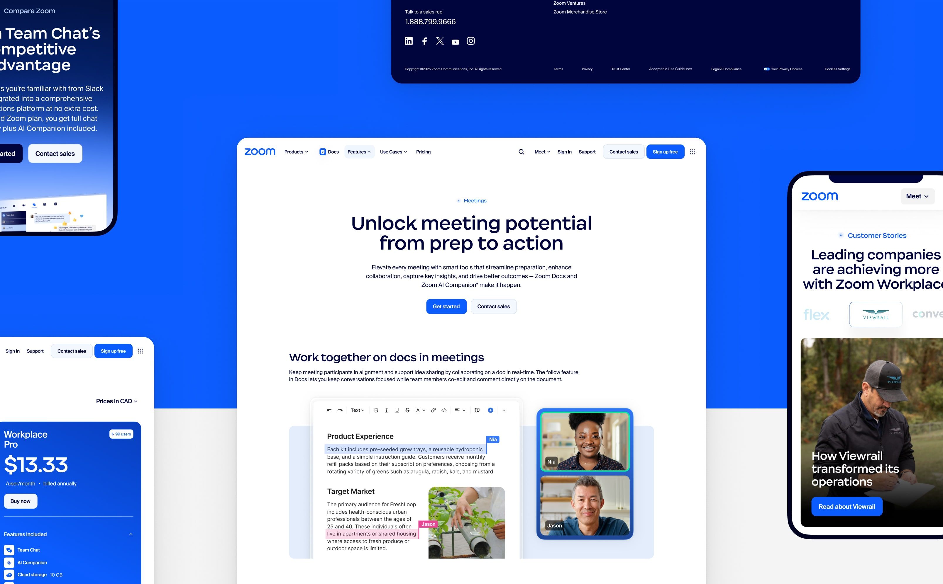 Zoom approached us with a request to reimagine the UX and visual design for zoom.com, aimed at improving clarity and creating a more modular, scalable framework to support over 25 product hubs. The initiative supports the company’s upcoming brand refresh and focuses on delivering a streamlined, engaging experience that drives performance and increases product awareness.